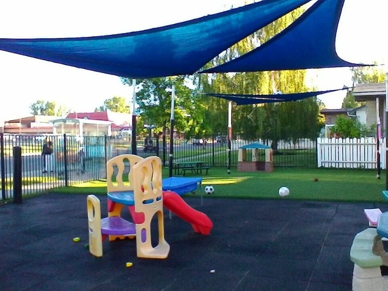 Outdoor playtime is spent in play yards that are divided by age groups and stocked with age-appropriate materials and toys that enhance and